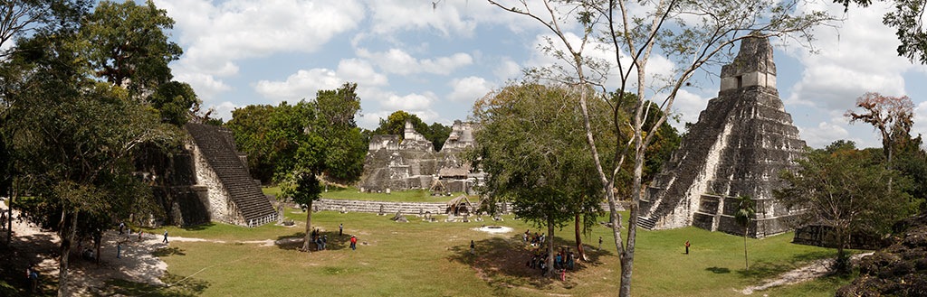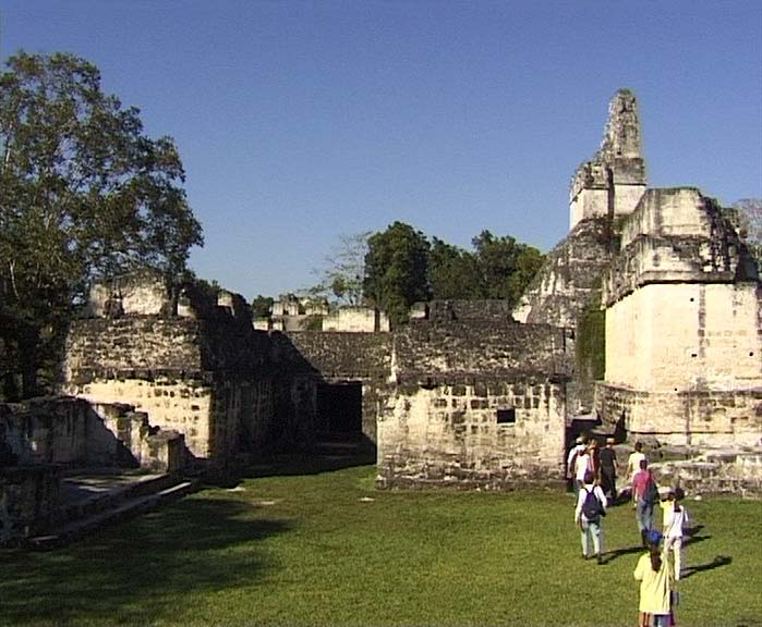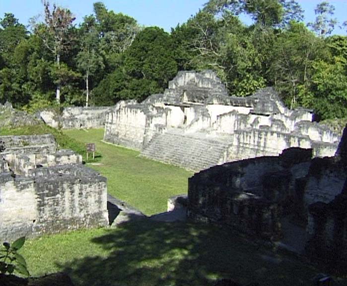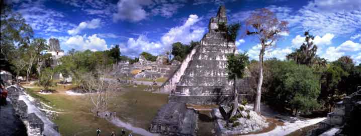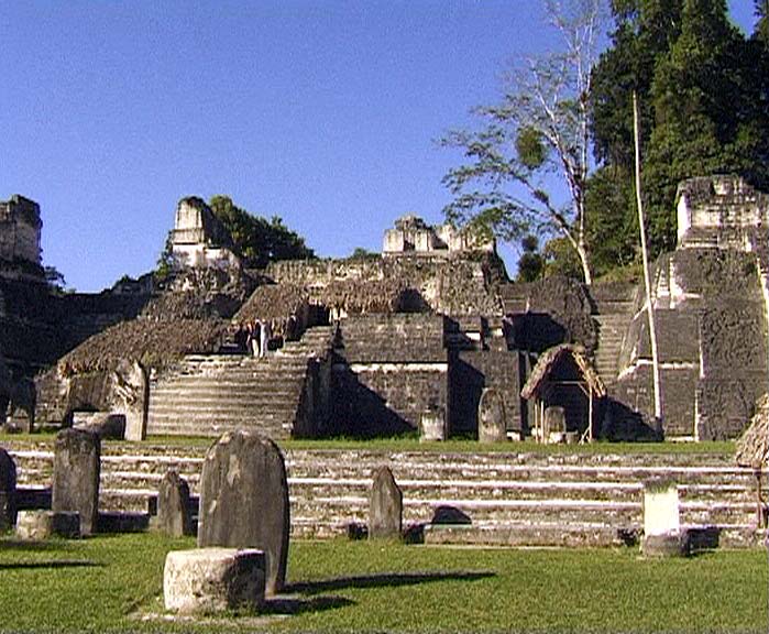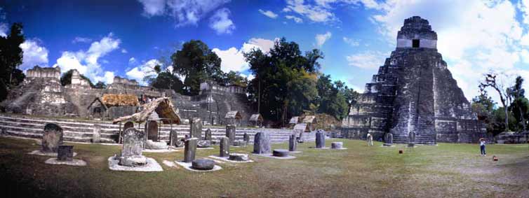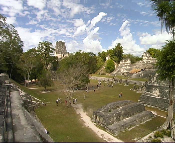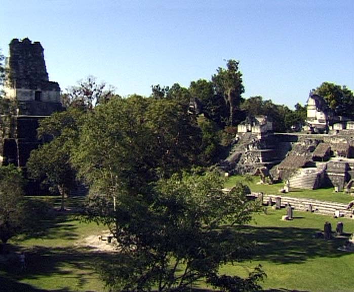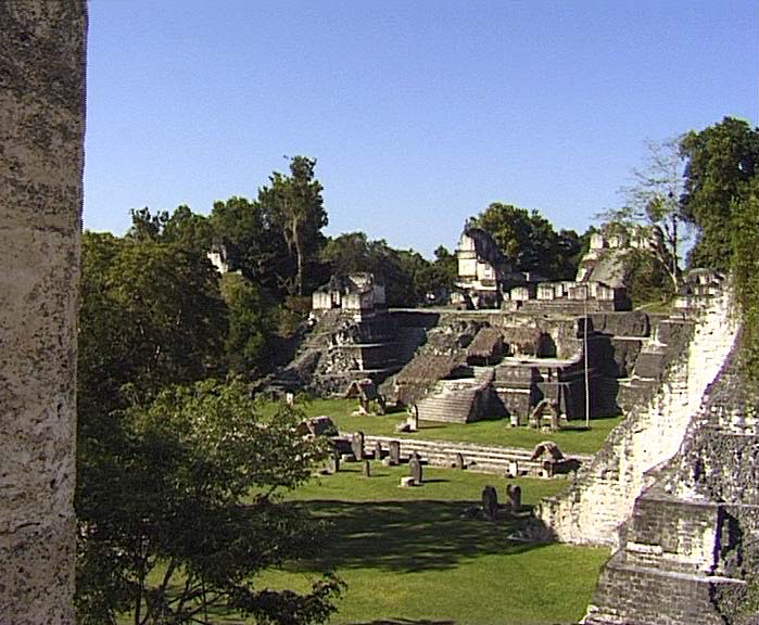 Die grosse Plaza in Tikal mit den beiden Haupttempel I und II sowie Teilen der Nord- akropolis |