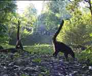 Fotografischer Vergleich der Tempel I und II die um 700 AD erbaut wurden mit historischen Aufnahmen A.P. Maudslay’s aus dem Ende des 19. Jahrhunderts. |