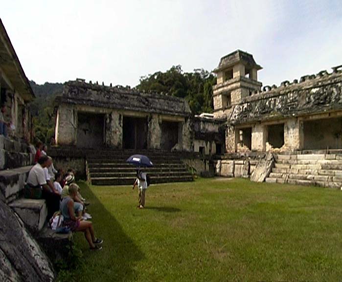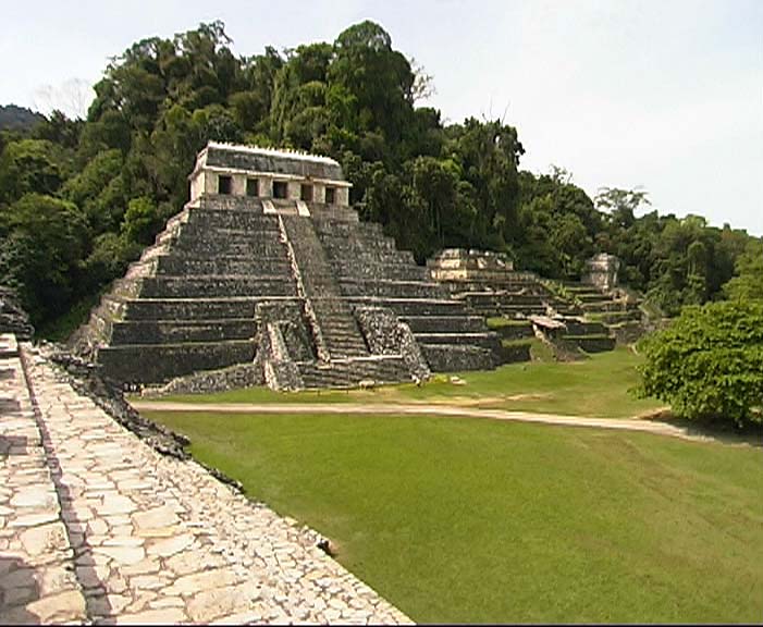 Der grösste Teil der Gebäude, wie sie sich heute dem Besucher darstellen, stammt aus der Zeit von König Pakal und seinem Sohn und Nachfolger Chan Balum. |