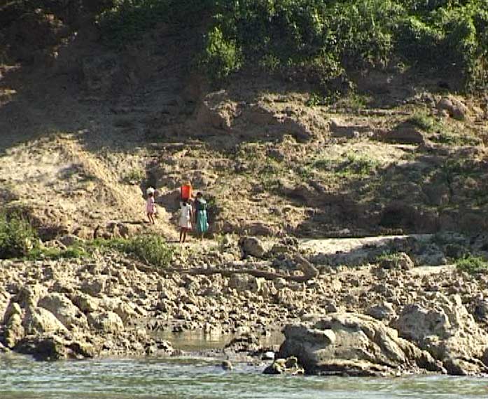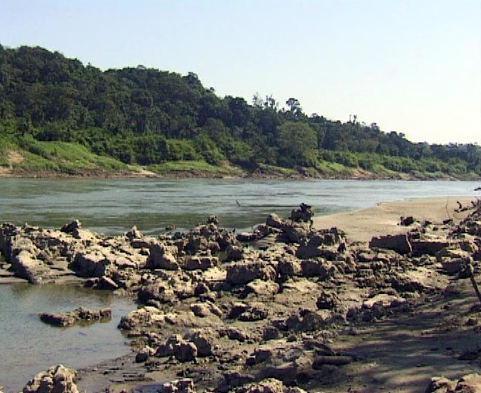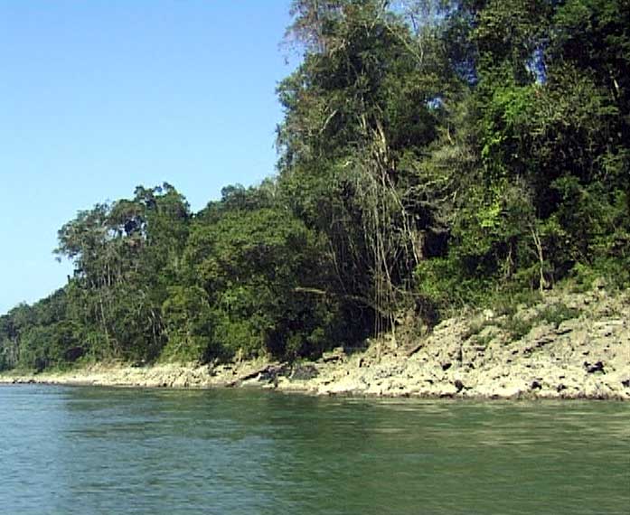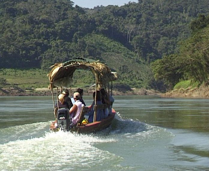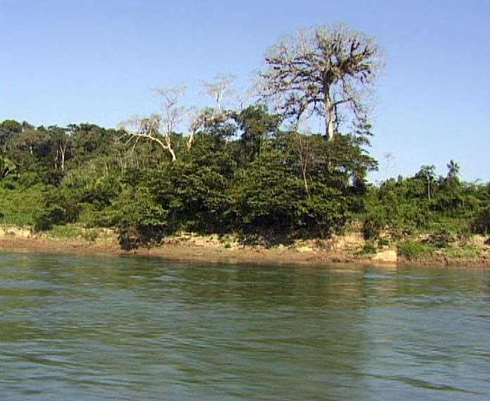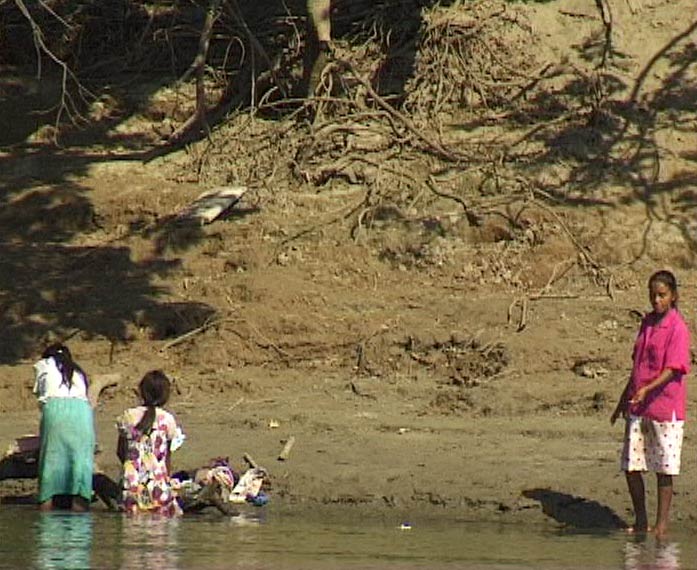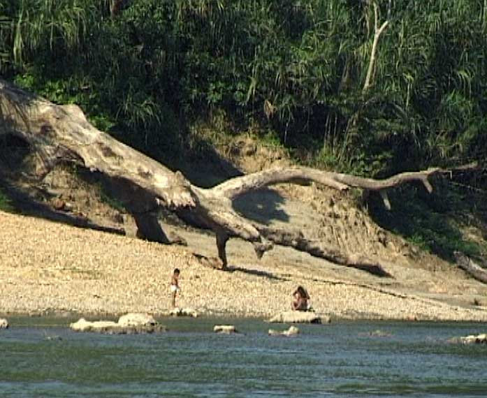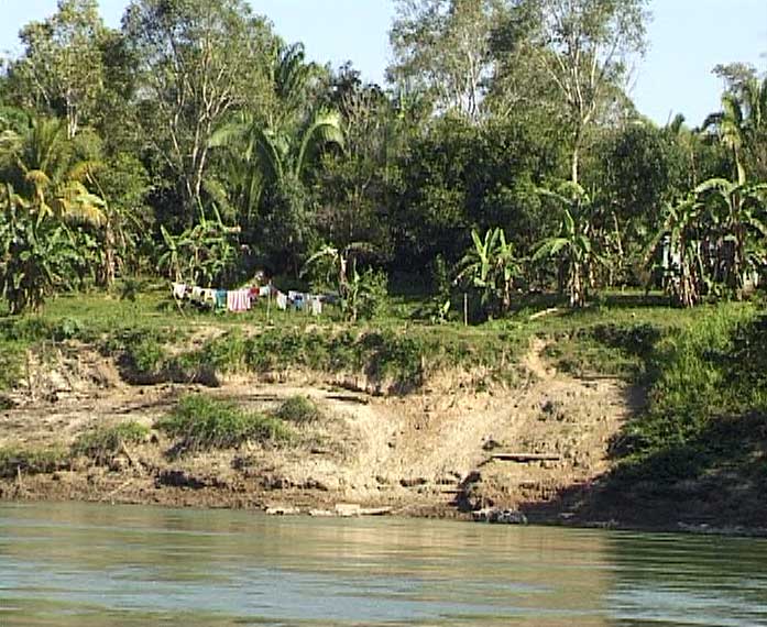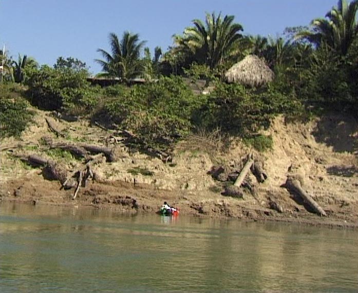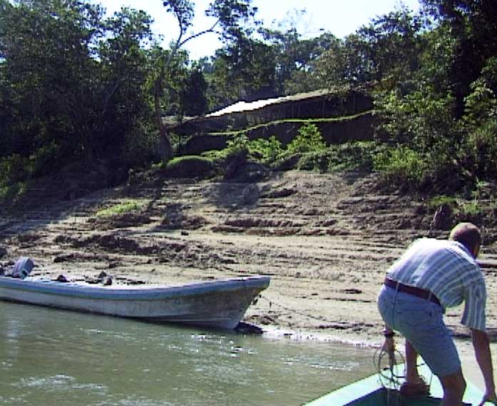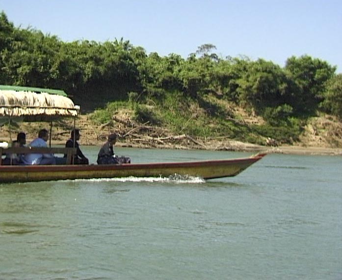 Die Mayastätte Yaxchilan lässt sich nur über eine mehr- stündige Bootsfahrt auf dem Rio Usumacinta oder mit einem Buschflugzeug während der Trockenzeit erreichen. Hier sind Aufnahmen vom Jan.1998, knapp 2 Jahre nach Ende des Bürgerkrieges in Guatemala. |
